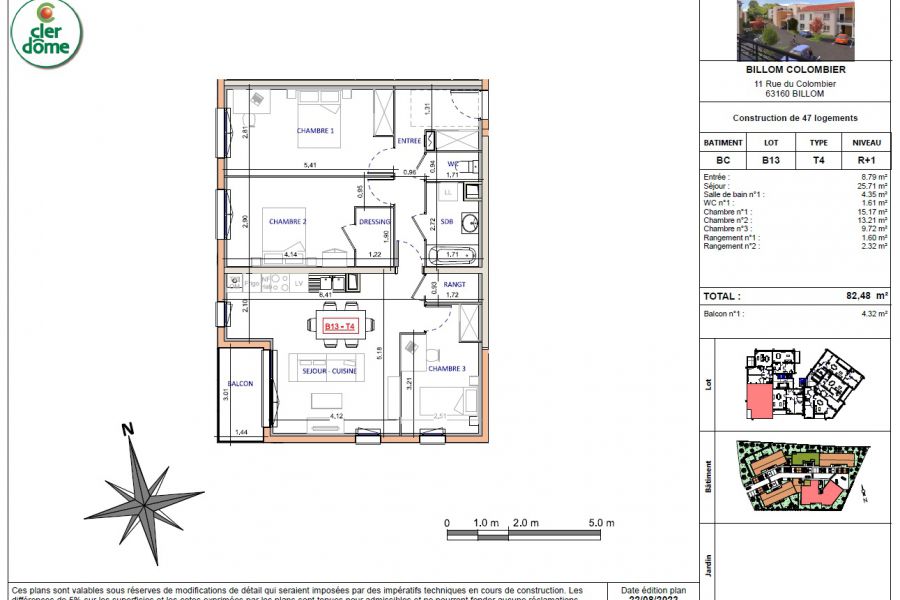 Appartement situé au 1er étage de 82,48m², balcon 4,32m².